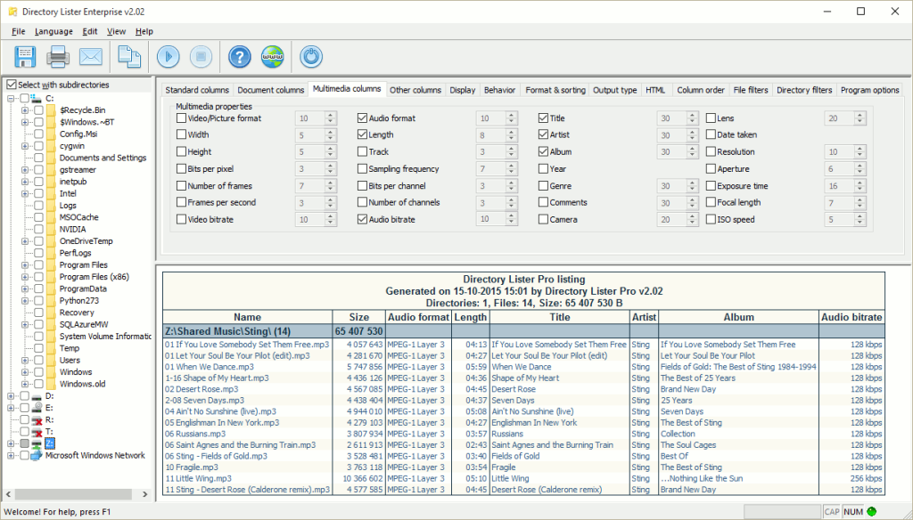 Directory Lister Pro est un utilitaire qui liste les dossiers, sous dossiers et fichiers contenus dans votre ordinateur. Les informations relatives à ces fichiers sont générées sous forme de tableau et peuvent être exportées au format Text ou CSV : titre, nom du fichier, taille, description, dossier précédent, auteur, mot-clé, date de création, etc.