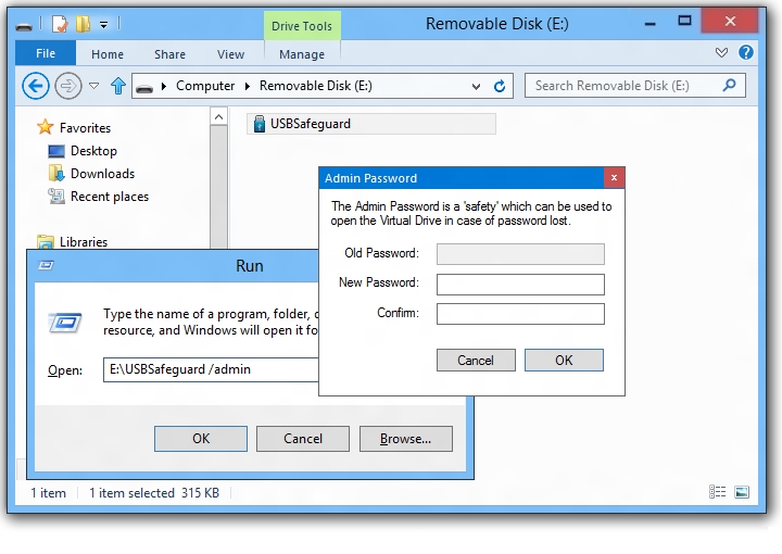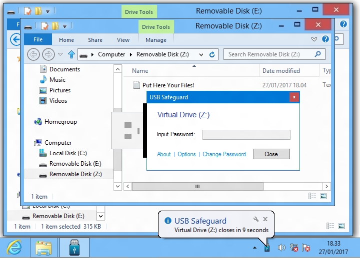 Il suffit de sélectionner les éléments de la clé à crypter et de choisir un mot de passe., indispensable pour accéder au contenu protégé par la suite. USB Safeguard utilise l’algorithme de cryptage AES 256 bits.